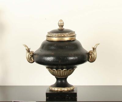 Title Black Resin Grecian Urn with Lid