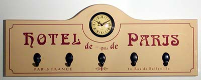 Hotel Paris Clock Plaque W/Hooks