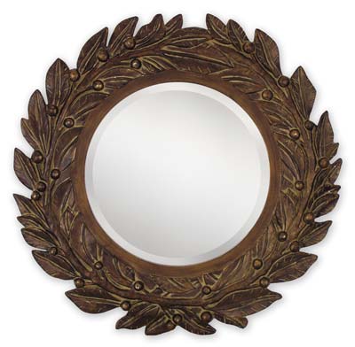 Olive Round Leaves Beveled Mirror