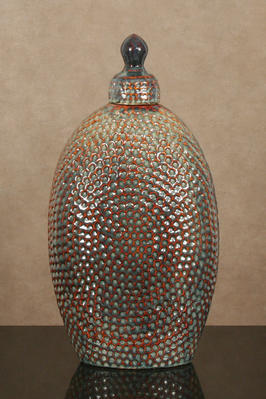 Blue/Brown Hammered Vase With Lid