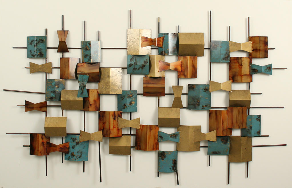 Rect. Wall Art Gold/Brown/Blue Squares
