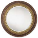 Brown Round Metal Beveled Mirror